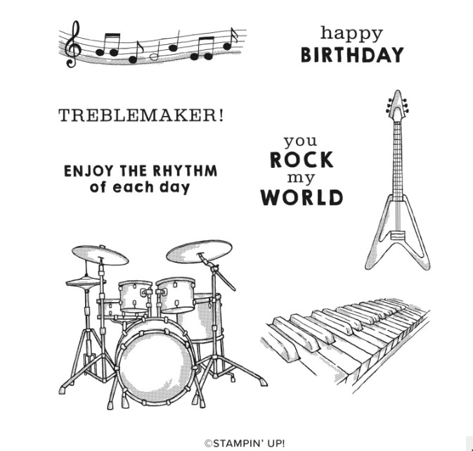 Recently I had the pleasure of making a birthday card for a family member turning 40! They love their music and I just had to use the “Enjoy the Rhythm” stamp set. From a young boy his instrument of choice was always the drums, so it was only fitting that I made his card using them.